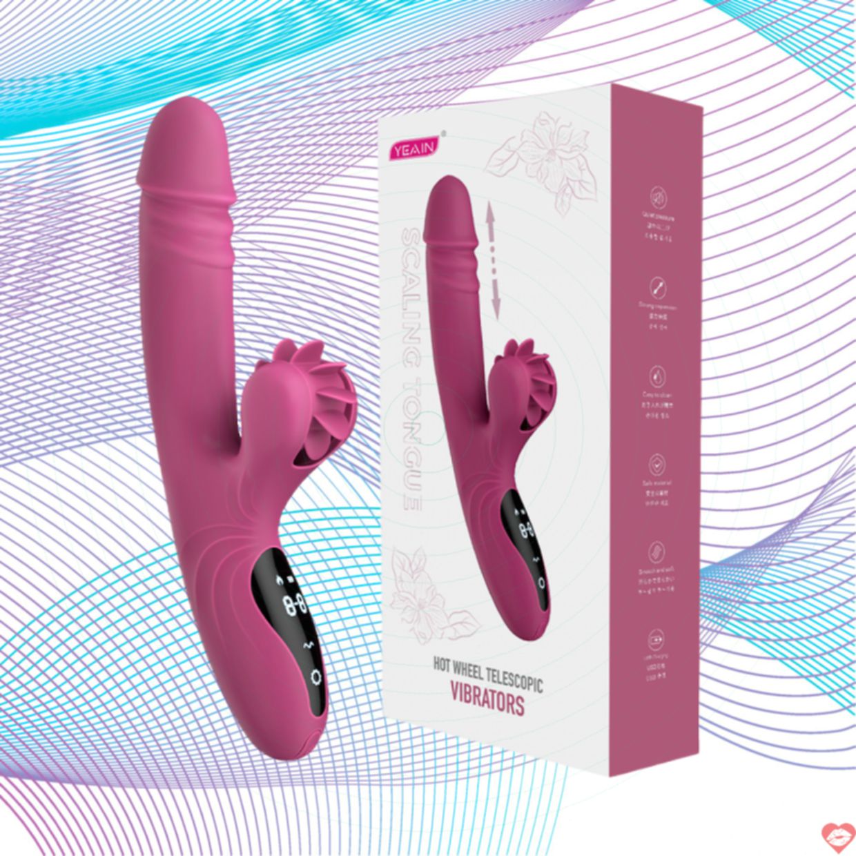 Hệ thống lưỡi liếm silicon mềm mại xoay tròn 360 độ khiến chị em lắp đặt không ngừng rên rỉ khi sử dụng dương vật giả Yeain Hot Whell.
